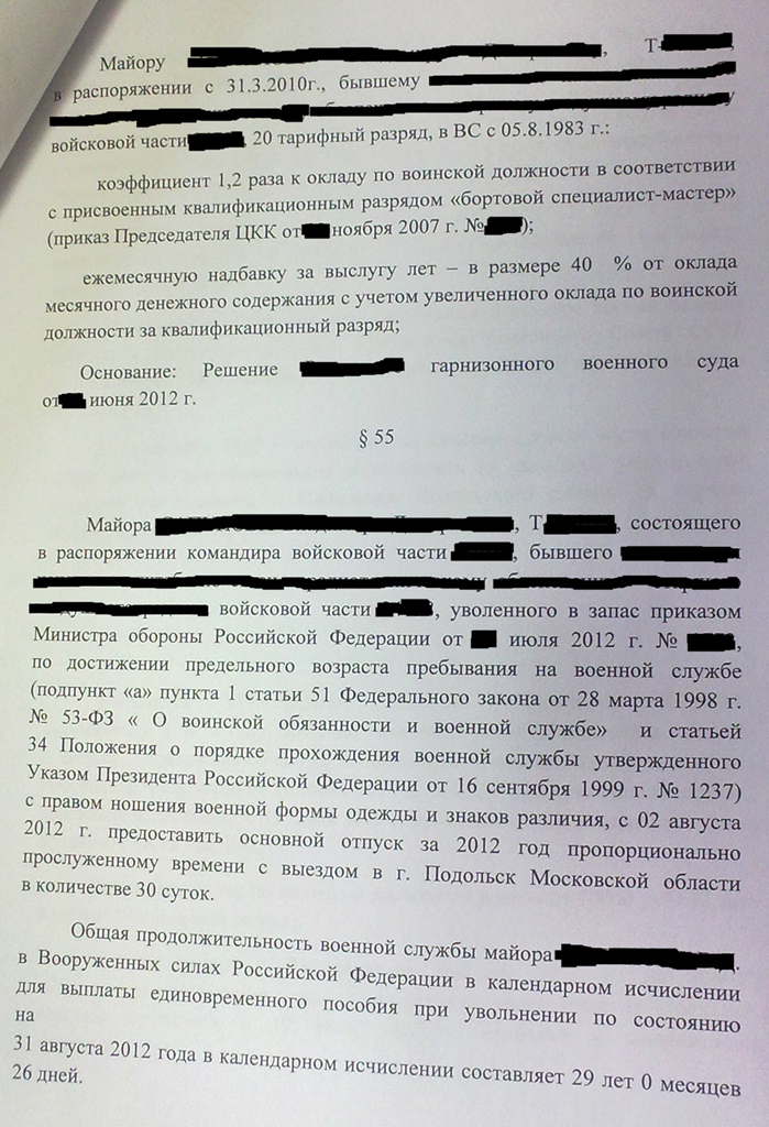 на увольнение кадровики отправляли в мае, приказ МО на увольнение состоялся в начале июля. В часть выписка из приказа пришла и соответственно довели до меня в конце июля. Отправили меня в отпуск с планируемой датой исключения из списков с 31 августа. И вот приказ МО состоялся и выписка уже в кадрах части. В этот же приказ включили и перерасчет выплаченного ДД с учетом увеличенного ОВД за летную квалификационную категорию на основании решения ГВС: По поводу медали «70 лет Вооруженных Сил СССР». В мае месяце написал рапорт на имя командира части на выплату дополнительного оклада за медаль 70 лет. Командир пропустил этот рапорт через юриста. Юрист дал "добро", всё законно. Командир рапорт подписал. Соответственно кадры включили в проект приказа восьмой оклад. ГУК, как видите с этим согласился