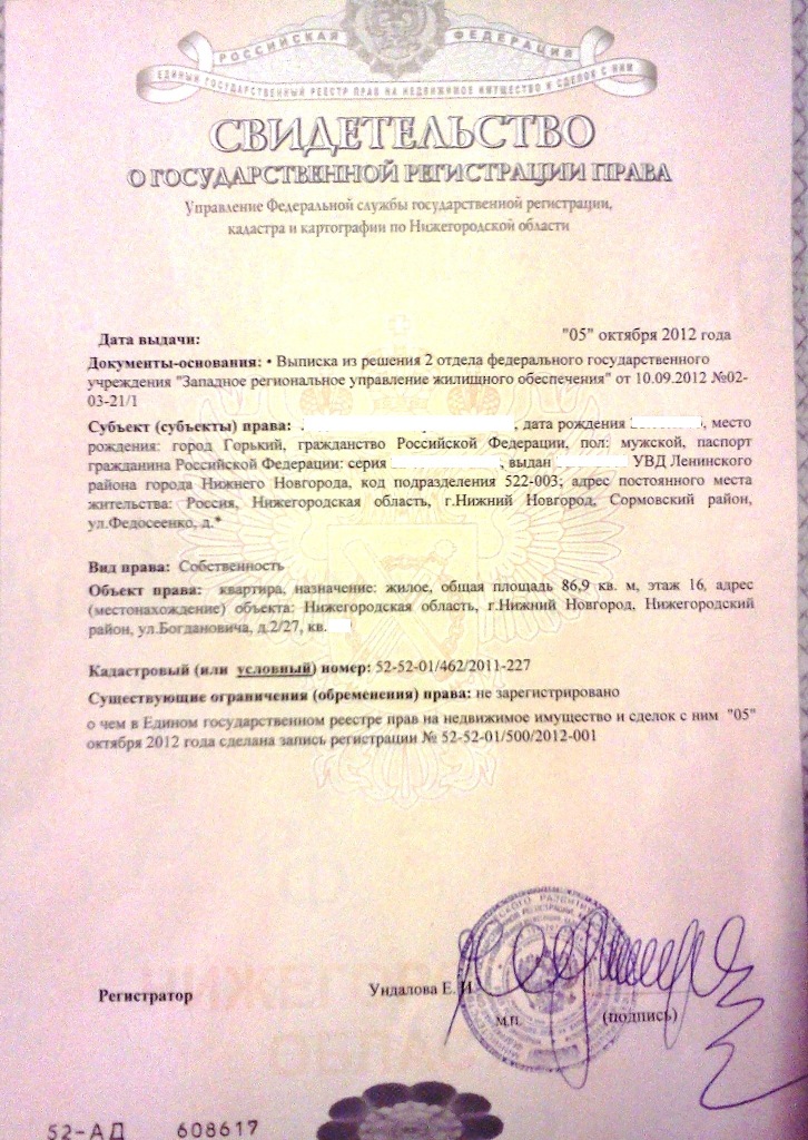 Получил сегодня свидетельство в ФРС Нижнего Новгорода на основании документов 2 отдела (Нижегородского во главе - гражданка Комарова). Выписка у меня под номенром 52№000001). Так как в выписке не указано что "в равных долях на всех членов семьи" то ФРС с нашего согласия свидетельство сделало на меня одного. Привез копию в РУЖО. Комарова сказала что в суд подаст. Сказал - пожалуйста, это РУЖО проморгало, а свидетельство на меня одного меня устраивает. т.к. квартиру думаем продать и купить в Заречной части Нижнего, т.к. детям так удобнее. Всем удачи. Если что, отпишусь. ¶