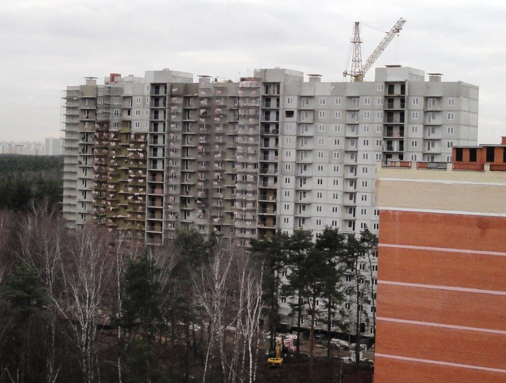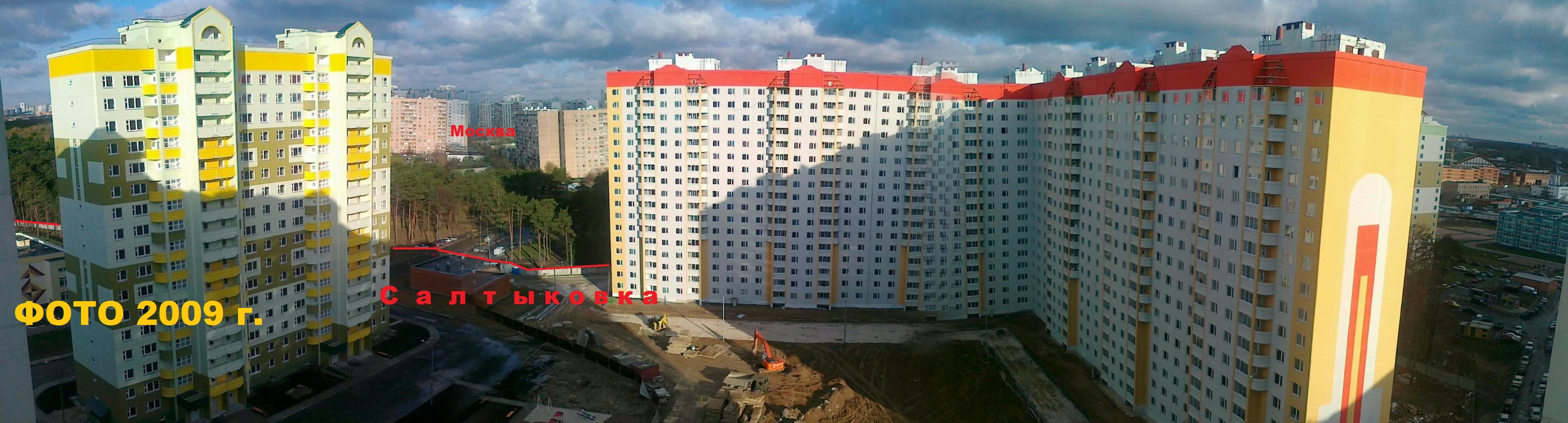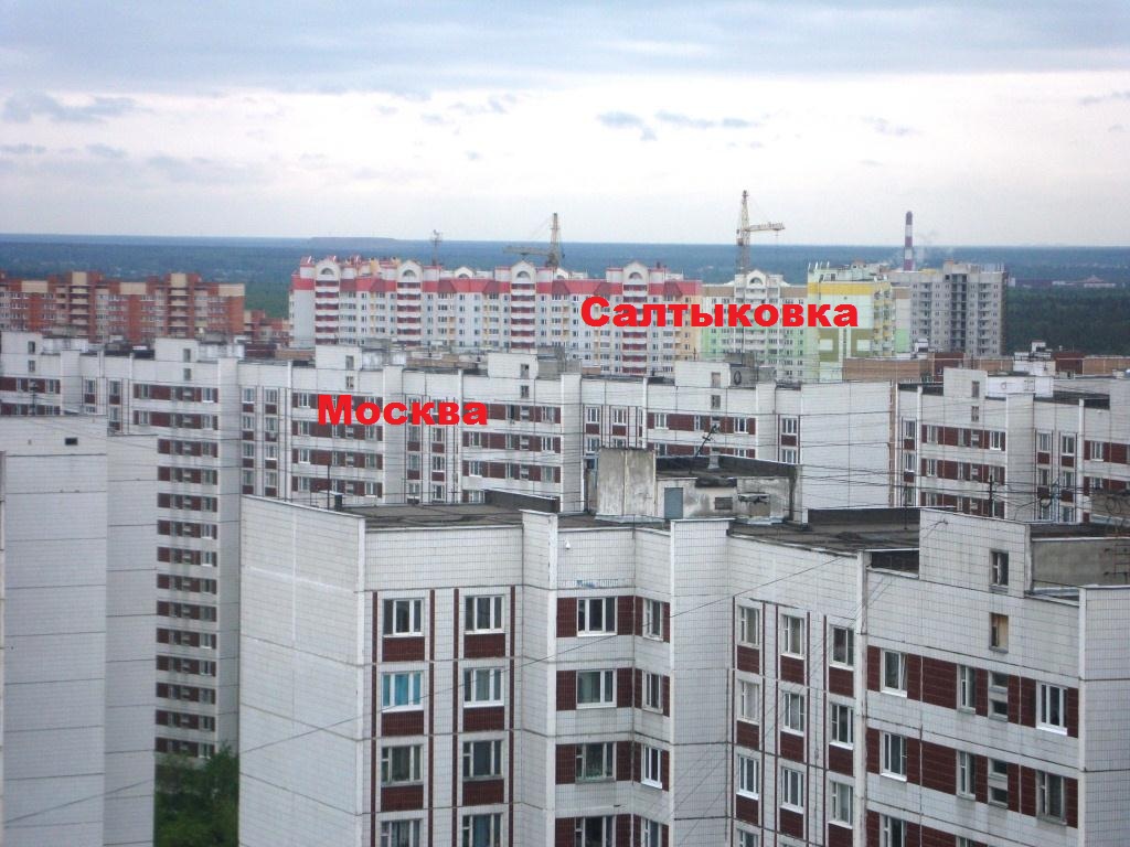 На фото - раздражающе яркие дома Салтыковки на фоне солидных белых и бежевых домов Москвы :)