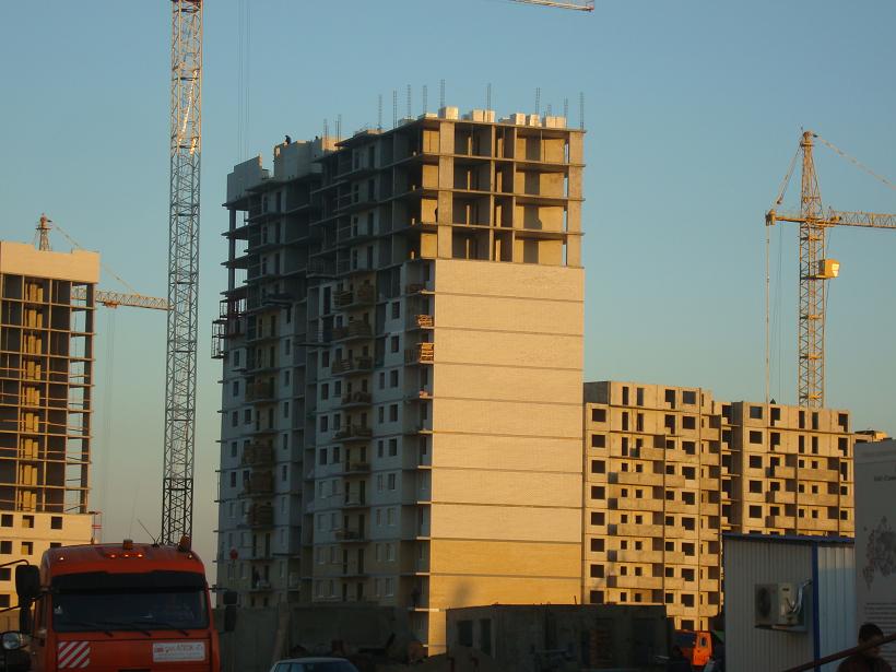 Подъезжали к стройке. Краны убрали с 1, 2,и 5 литеров. Идут отделочные работы. На земле сложены кожухи для радиаторов, ванны и т.д. Много рассмотреть не успели, темнело.