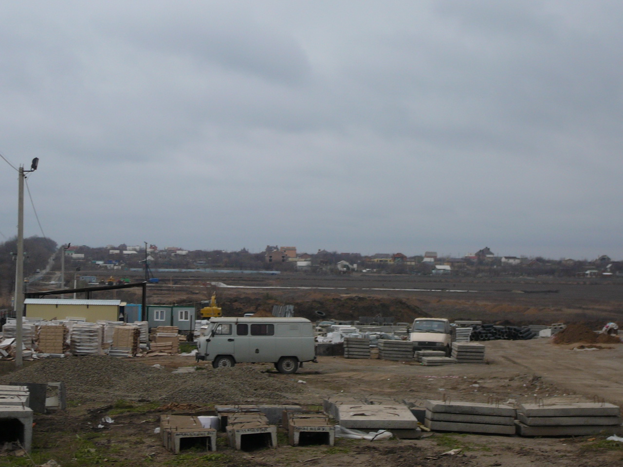 На пятне под коммерческую застройку полным ходом идут работы: укладывают плиты кругами, как было и в 140 городке, работают экскаваторы, землю свозят к балке. Уже стоит один копр, забивает сваи.