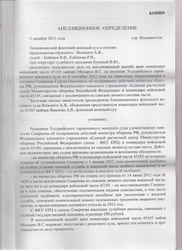 Решение может быть обжаловано в апелляционном порядке в Московский окружной военный суд через Нижегородский гарнизонный военный суд в течение месяца со дня его принятия судом в окончательной форме.