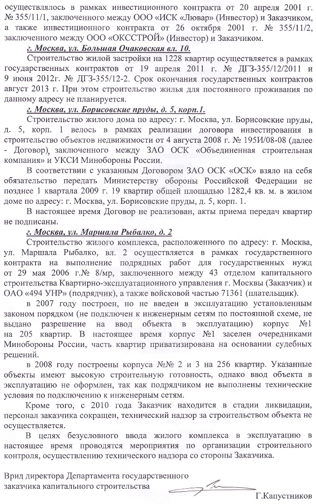 А чего Вы хотите добиться этой жалобой? Приостановить распределение в Молжаниново, распределить первоочередникам (догадайтесь кому!) всё внутриМКАДовское? А кто ж будет жить в Молжаниново? Ответ сам напрашивается - кто угодно, безквартирных военных хватает!