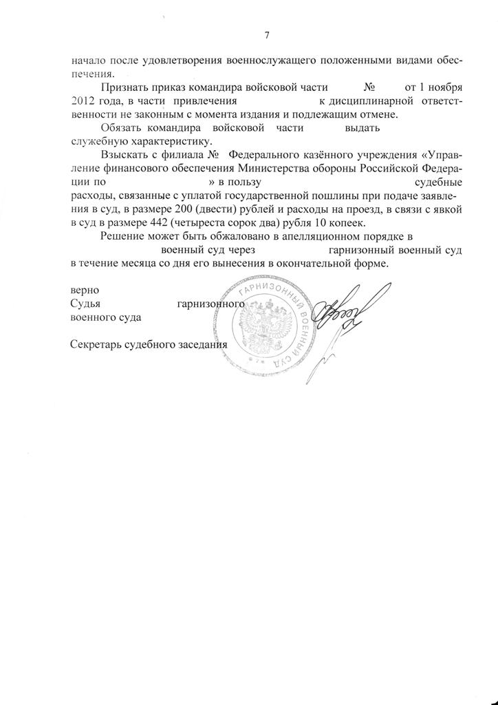 Решение может быть обжаловано в апелляционном порядке в Московский окружной военный суд через Нижегородский гарнизонный военный суд в течение месяца со дня его принятия судом в окончательной форме.