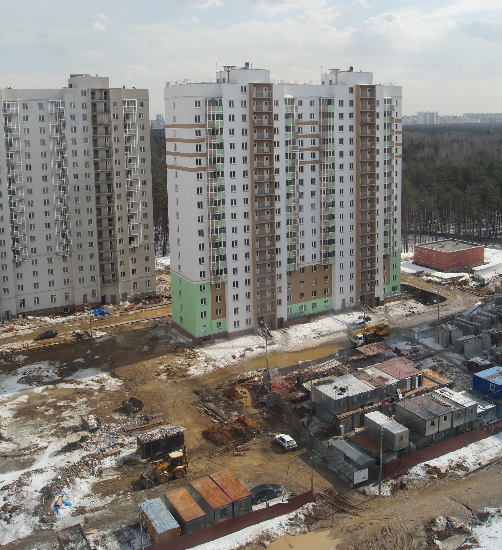 То, что людей перекинули на мытищинскую стройку ни о чём не говорит. Вернее говорит о том, что в двух домах, скорее всего, закончили отделочные работы, и рабочих перебросили на отделку в мытищи. Квартиры не будут распределять до того, как краны и другая тяжёлая техника не уйдут со стройплощадки - это требования безопасности ,которые в нынешнее время редко выполняются, но в данном случае, скорее всего, стрела крана или противовес находятся над проездами к готовым домам, или чтобы бульдозеры-грейдеры экскаваторы могли работать, траектории разворотов и заднего хода попадают туда же.