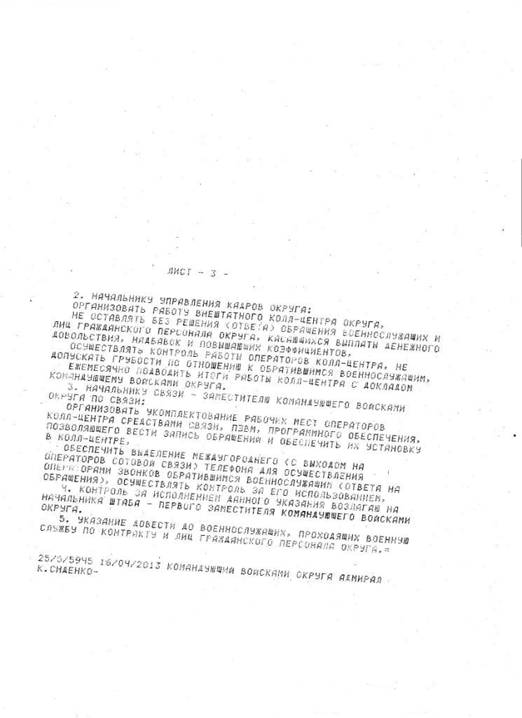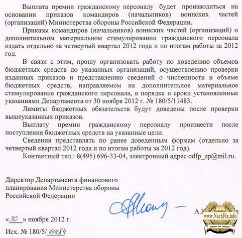 Указания директора Департамента финансового планирования Министерства обороны Российской Федерации по 1010 военнослужащим в 2012 г.