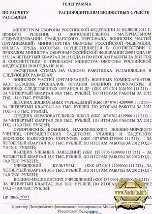 Указания директора Департамента финансового планирования Министерства обороны Российской Федерации по 1010 военнослужащим в 2012 г.