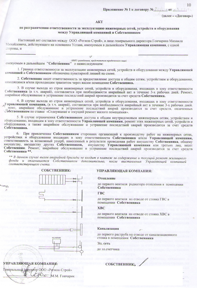 Пример Акта по разграничению ответственности за эксплуатацию инженерных сетей, устройств и оборудования