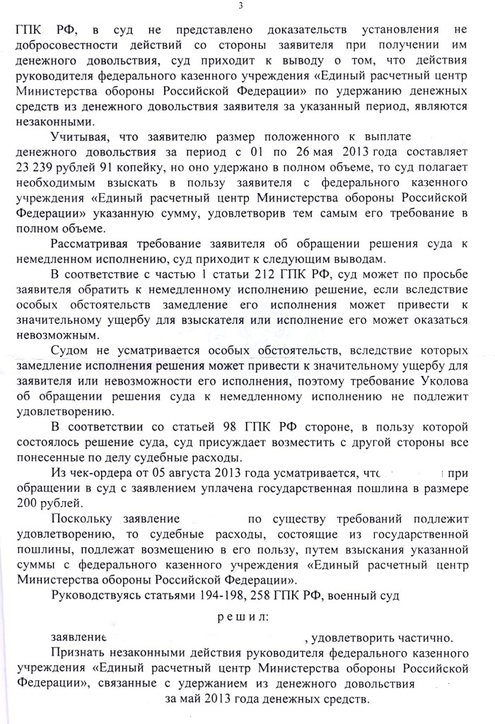 Удержание из ДД излишне выплаченных сумм. Решения Уссурийского ГВС - Положительное: