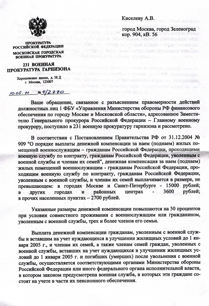 сотрудников Филиала №1 федерального бюджетного учреждения "Управление фин.обеспечения МО РФ по Москве и МО", которые с 1 января 2013 года не выплачивают ДК за поднайм жилья в г.Москва. Договор поднайма заключил с октября 2012 года, со скандалами и боями выплатили только по декабрь 2012 года включительно.За это время собрал по их (УФО) требованию по кругу еще 2 пакета документов по приказу МО РФ №235 от 2005 года, плюс порывались заставить собрать кучу документов,не определенных приказом МОРФ.Обращался по данному вопросу,не выплаты денег: в Главную военную прокуратуру еще в апреле, спустили вниз во все прокуратуры,даже дежурную отписку не прислали.В Министерство обороны- по интернету и заказным письмом- наплевали,даже дежурной отписки нет.В Комитет ГД по обороне- что то до УФО дошло от них, была возня какая то,но возня мелкая,бесстрашная,которая убедила меня,что никто ничего и никого не боится,но в итоге представители нашей части довели,что опять нужно собрать почти полный пакет документов и написать заново рапорта за каждый месяц на имя командира части, без которых командир части не может издать приказ на выплату мне ДК за компенсацию жилья.В итоге УФО валит на Командира моей в/ч,войсковая часть валит на УФО,а в итоге обе стороны кричат,что я сам дурак. Что делать- в очередной раз собирать документы и рапорта на поднайм жилья, написать жалобу Президенту или сразу в суд.Да ,договор поднайма заканчивается 3 августа 2013 года, новый продлевать не буду,наелся поднаемом за это время по самое нихочу.Всем спасибо.
