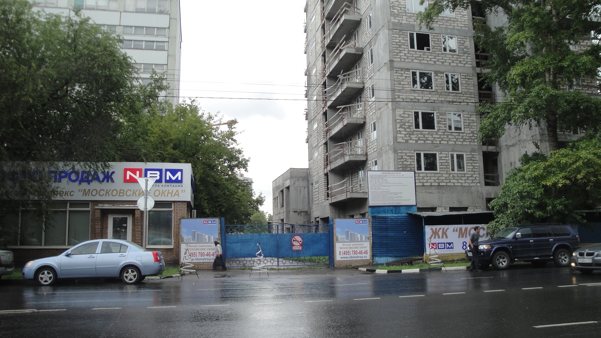 Строится только какой-то дом на той же территории - на уровне нулевого цикла. Заезжают редкие бетоновозы и вяло шевелится один кран.