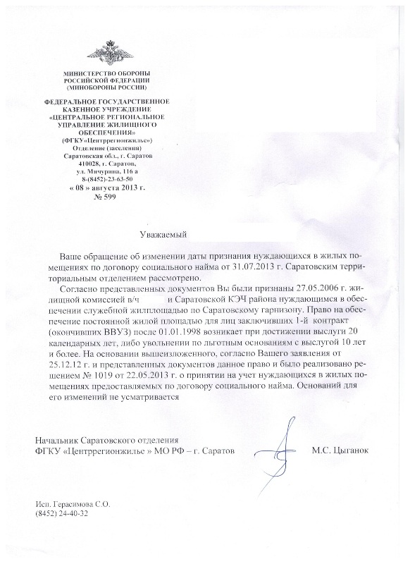 Уважаемые форумчане, подскажите, в каком направлении двигаться для достижения своей цели, просил об изменении в едином реестре данных по жилью для военнослужащих, а именно, дату принятия на учет на 2006 год с 2012 года, предоставил документы с заявлением, в ответ пришло письмо.
