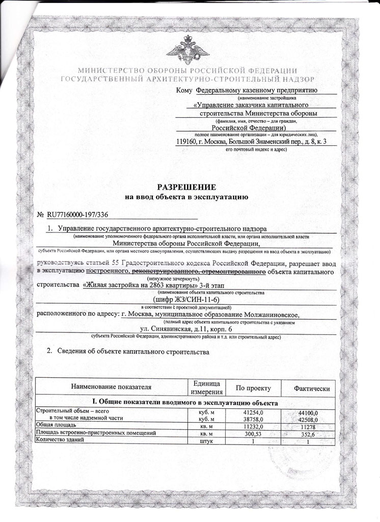 5. Разрешение на строительство, в нарушение статьи 51 Градостроительного кодекса, выдано не органом местного самоуправления (Управой Молжаниновского района), а Управлением государственного архитектурно-строительного надзора Министерства обороны Российской Федерации. Согласно приказа МО РФ от 2 декабря 2011 г. № 2300 и Приложения к приказу МО РФ от 23 мая 2012 года № 1250 Управление государственного архитектурно-строительного надзора МО РФ может выдавать разрешения на строительство и разрешения на ввод в эксплуатацию объектов обороны и безопасности, являющихся объектами военной инфраструктуры. Жилой микрорайон города Москвы не может быть объектом обороны и безопасности.