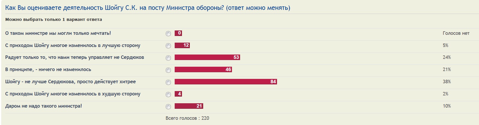 Результат первых суток голосования на нашем форуме и запущенном на "Одноклассниках" в группе "Офицеры"