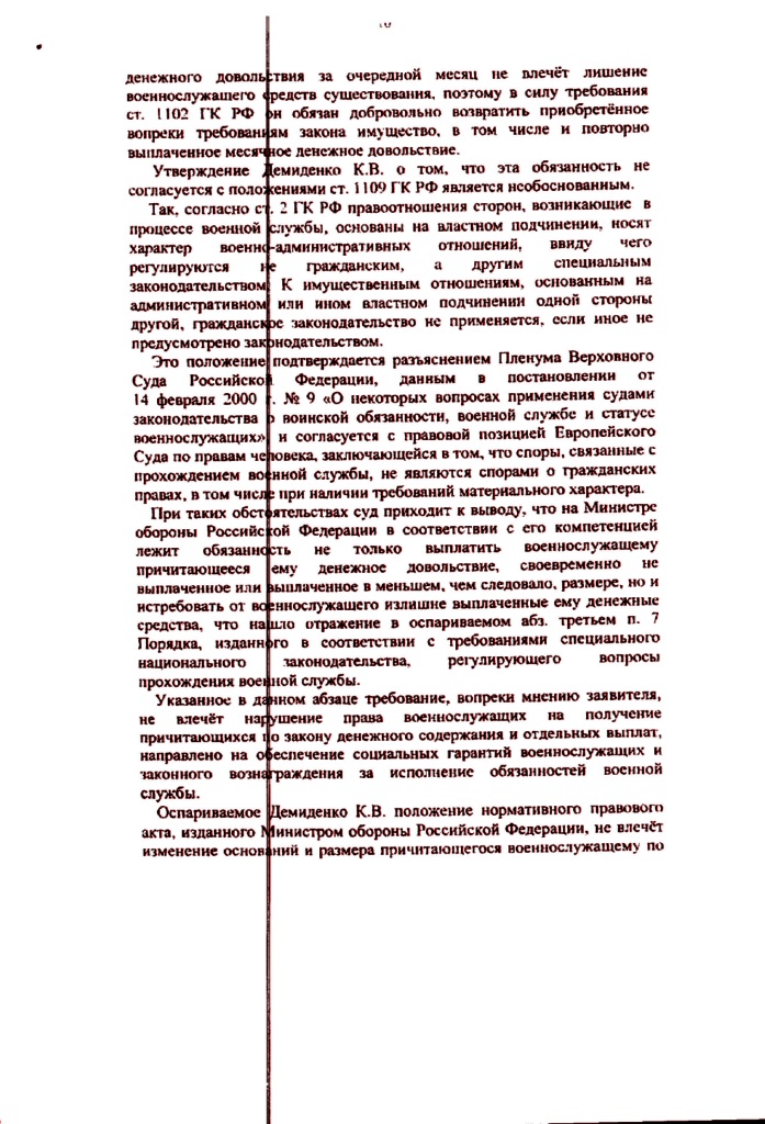 Более того в «Порядке обеспечения денежным довольствием военнослужащих» есть п.6 практически повторяющий требования п.3 ст.1109 в отношении денежного довольствия