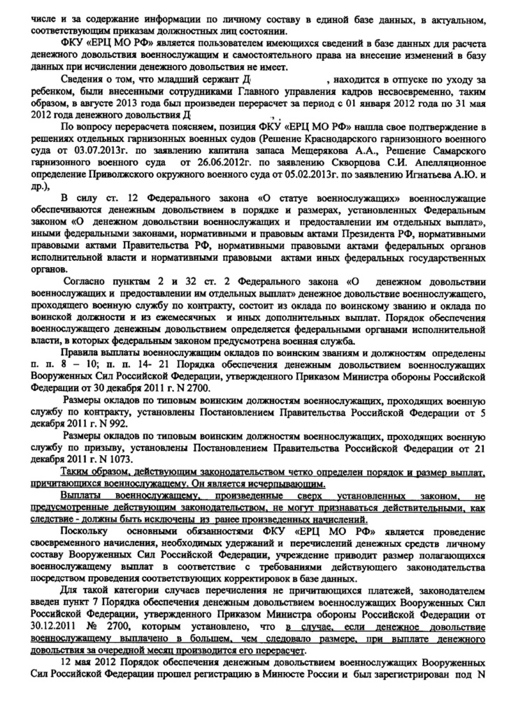 п.7 не устанавливает ни каких ограничений по проведению перерасчетов, и применяется сотрудниками финансового органа в отрыве от вышеуказанных статей. Сотрудники ЕРЦ МО РФ производят перерасчет, ссылаясь на то, что п.3. ст. 1109 ГК РФ не действует в Вооруженных Силах т.к. денежное довольствие военнослужащих ничем не приравнено к средствам существования