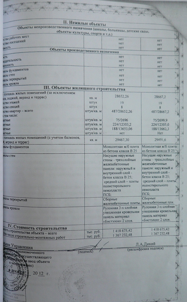 А то я насчитала по выложенному документу: стоимость строительства объекта - 1 418 675,42 руб / на общую площадь объекта 39795,2 = 35 649,5 руб. стоит 1 кв.м. ОБЪЕКТА (с лоджиями и нежилыми помещениями), а не жилого помещения. Значит, 73 800 - 35 650 = 38 150 руб - это накрутка на все остальное? Чтобы узнать реальную стоимость 1 кв.м ЖП, должен быть еще какой-то Контракт на инж.коммуникации и прочее?
