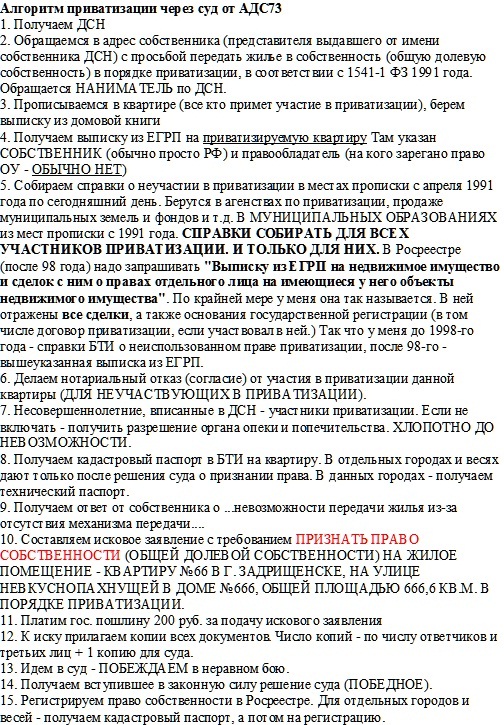 Вас видимо интересует приватизация через суд? Первое что попалосьПодскажите алгоритм действий