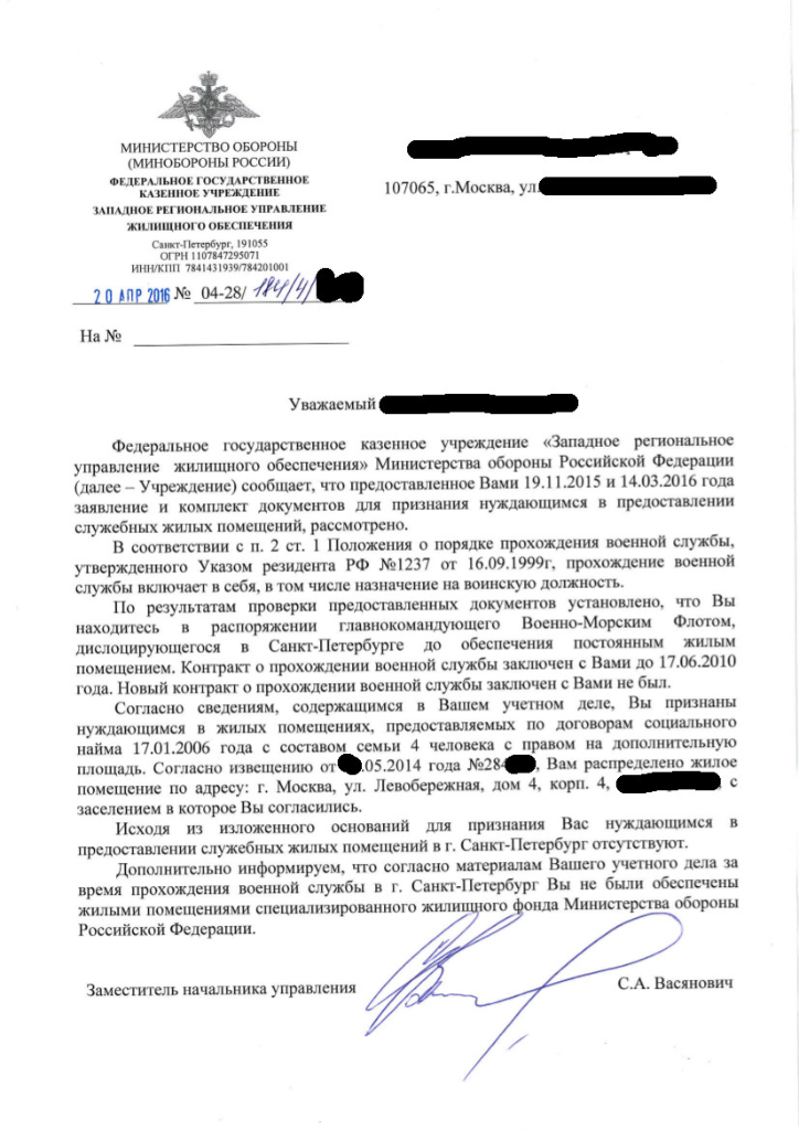 Доброй ночи. Подскажите, по каким основаниям можно отказаться от служебного жилья? Ситуация такая: жилье предлагается в п. Шушары Пушкинский р-н СПб, прохожу в/службу в Ломоносовском р-не СПб, а/м нет, на общественном транспорте будет уходить часа 4 на дорогу в одну сторону.