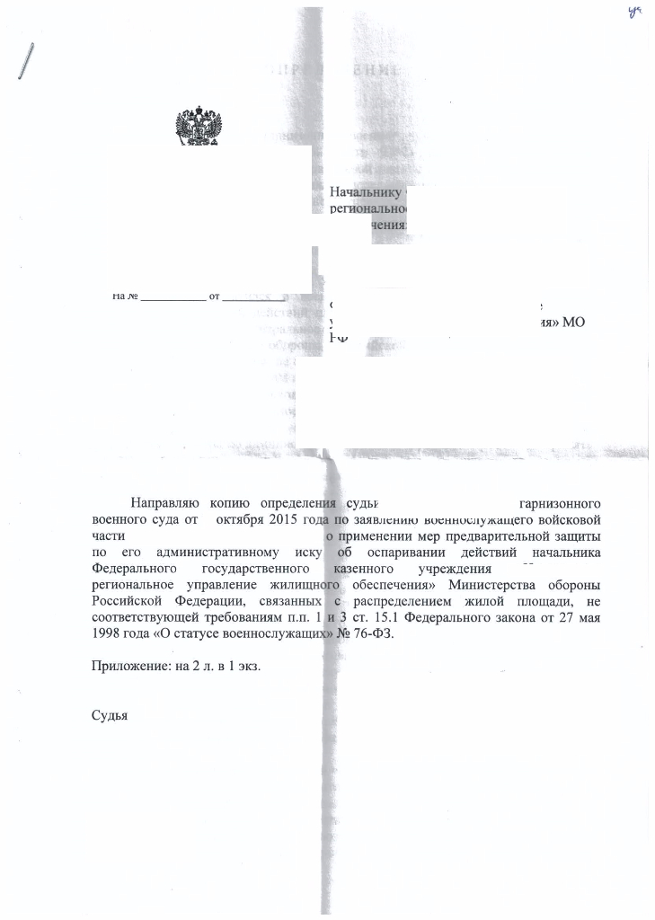А это решение от 14.09.15 г.состоялись все слушания ,26 .08 было вынесено решение конечно мне отказали,и ни чего не нарушено ,и уведомление несет в себе всего лишь информационный характер,об этом и утверждали юрист из РУЖО и представитель командира, конечно у меня есть 30 дней для обжалования .