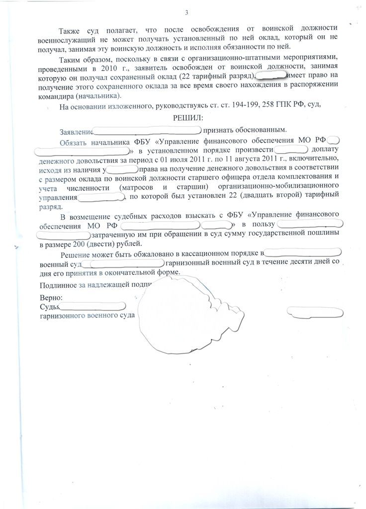 Спешу сообщить, что заседание состоялось 11 августа, сегодня получил решение. Суд выиграл. Единственное, что один из пунктов моего заявления про "до исключения из списков личного состава части" не удовлетворил. Только с момента нарушения по день судебного заседания. Уфологи собираются подавать касацию. Поэтому пока решение выкладывать не стану. Поглядим чем все закончится. А Ваше заявление и решение увидеть реально? Или нет таковых?)Жорес, добрый день. Как прошел суд, какой результат?