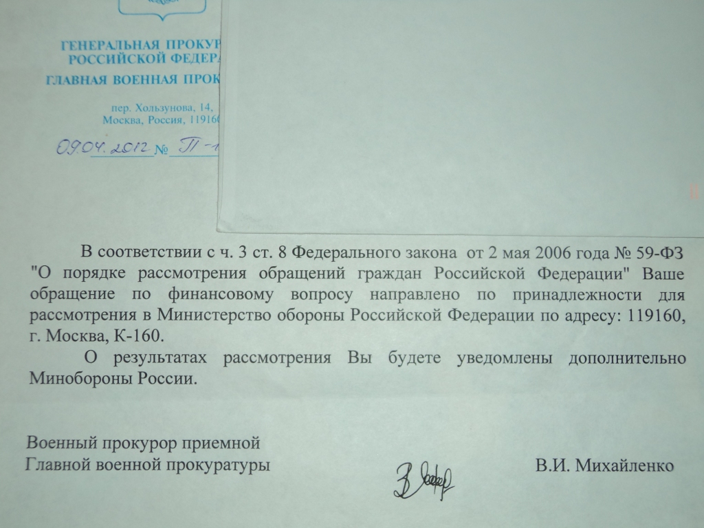 «Необходимо отметить, что в марте 2012 года по результатам проверки многочисленных обращений военнослужащих о несвоевременном и неполном обеспечении их денежным довольствием Главная военная прокуратура внесла представление заместителю министра обороны РФ. В настоящее время военным ведомством принимаются меры для устранения нарушений закона в данной сфере», – также сказано в сообщении Генпрокуратуры.