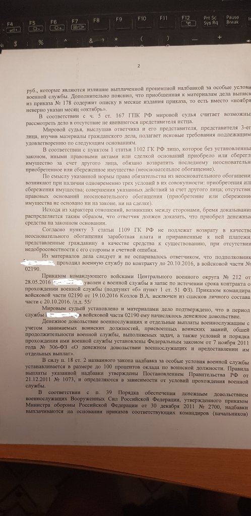 #4622[ref]step_a[/ref], Cуд может что угодно применить исходя из своего внутреннего убеждения. Мой пример -24.11.2013 исключен из списков. 27.03.2014 суд отменил приказ об исключении из списков, решение вступило в силу больше чем через месяц. 01.09.2014 зачислен в списки части приказом от 16.10.2014. ДД получил не одновременно, а в последствии. Суд принял решение взыскать пенсию не с даты решения суда об отмене приказа об исключении, а полностью с даты исключения из списков части, т.е. по мнению суда я должен был после исключения из списков части сообщить военкомату, что буду оспаривать в суде незаконное исключение, чтобы при назначении пенсии они ее не вздумали мне выплачивать, хотя таких намерений у меня до Нового года не было, созрел только после боя курантов.
