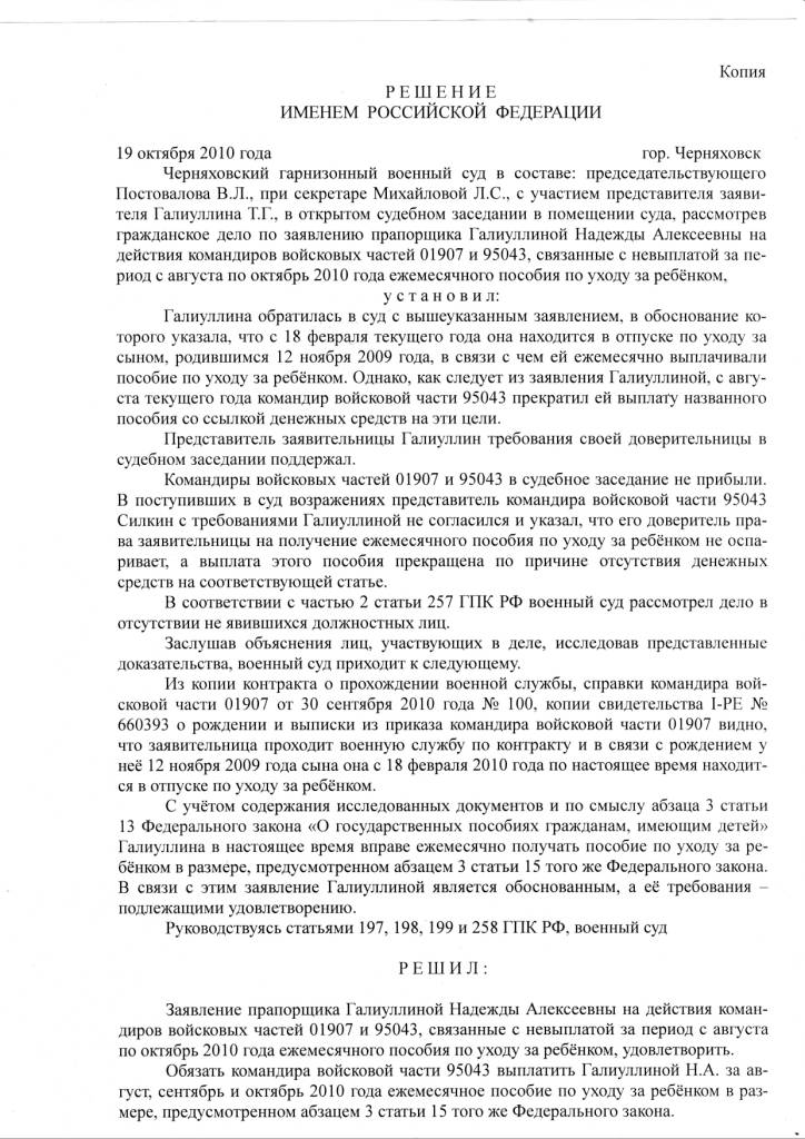 Свежее решение по пособию. Также выложил в коллекции судебных решений в соответствующей теме.