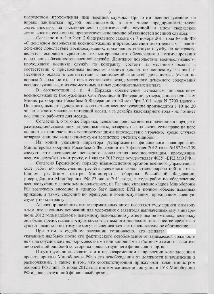 1. ЕРЦ МО РФ имел право взыскать «переплаченную», по его мнению, сумму только через суд, но в нарушение ч.3 ст.35 Конституции РФ, самостоятельно произвел удержание денежных средств из причитающегося мне денежного довольствия за апрель 2012 года.