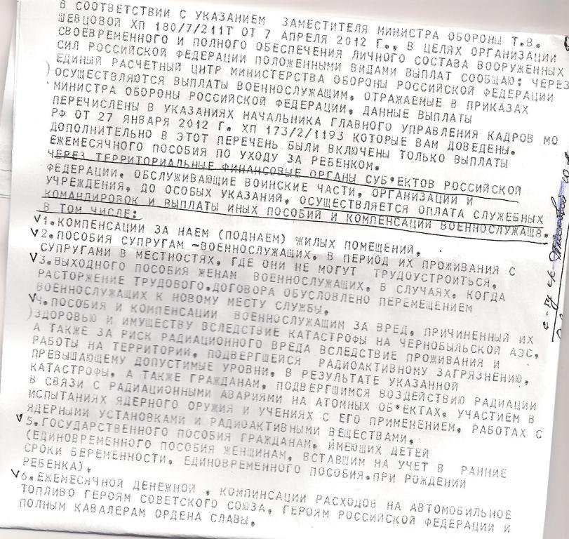 Сегодня нашел другую ТЛГ. В соответствие с указанием Шевцовой №180/7/211 Т от 07.04.2012 г. те выплаты которые осуществляет УФО в т. ч. расходы за проезд в отпуск, компенсация за вещевое имущество, не представлять в проекты приказов МО.