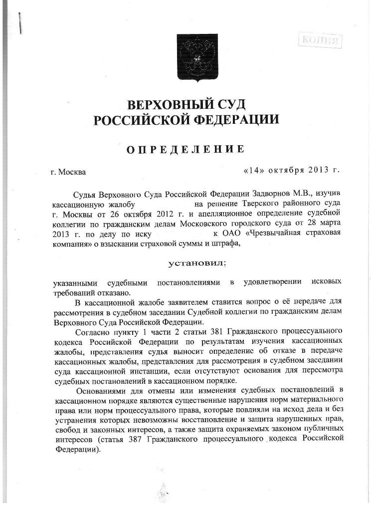 #5988Да уж, сошлюсь обязательно. Михалыч и еще как Вы объясните тот факт что жалобы в ВС были поданы в один день моя и коллеги а по нему ответа нет конечно время покажет но хочется думать попала в хорошие руки.однако, это откровенное глумление над заявителями, причем после того, как тот же ВС в определениях по Ходыкину и Калюжному однозначно указал, что по СС 12 года положены фиксированные выплаты, и на что рекомендую сослаться в жалобе председателю.Для обсуждения выкладываю определение.