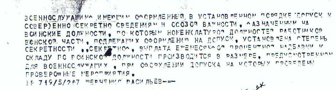 #797Интересно, а вот у меня допуск по Ф.2, но сейчас нахожусь на должности, которая по номенклатуре только по Ф.3, соответственно получаю 10%. Снижали мне допуск или нет совершенно не в курсе (наверно военного можно об этом не ставить в известность), но вот насчет проверочных мероприятий мне поясните, это что означает? Меня теперь терзают смутные сомнения... А не зажали ли мне 5%?Почему в нашей части по 3-й форме военнослужащим платят 10%?Будем разбираться...