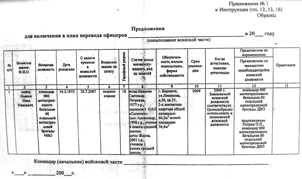 #870Здравствуйте! Точно не знаю по теме ли я, но хотела спросить кто-нибудь слушал о Инструкции по организации и проведению переводов офицеров Вооруженных Сил РФ к новому месту службы, утвержденной Министром обороны РФ от 16.11.2009 г. № 205/2/778 (источник – журнал «Право в Вооруженных Силах», № 2, февраль 2010 г., стр. 124-125) и ее применении в Спецстрое России. Супруга отправили в ссылку на равнозначную должность. В суде представители Спецстроя аргументировали, что у них указанная инструкция не объявлена для руководства.
