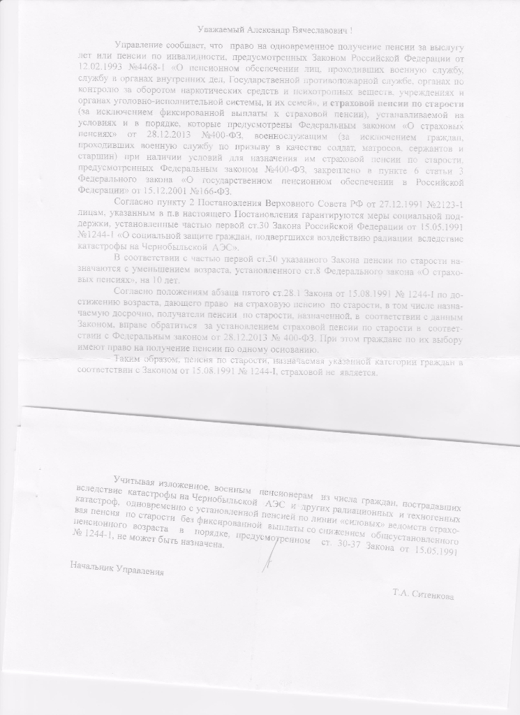 #1549Я военный пенсионер с 30 мая 2012 г., 1961 года рождения, являюсь ликвидатором аварии на Чернобыльской АЭС первого периода (работа в зоне отчуждения в 1987 г.). С 1 июня 2012 г. по настоящее время являюсь работающим пенсионером.