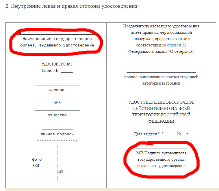Вот про штампы (оттиски) нет ни слова. Не странно ли?При заполнении удостоверения записи в строках: "наименование государственного органа, принявшего решение о присвоении звания ветерана", "фамилия", "имя", "отчество" и "полное наименование соответствующей категории ветеранов" - производятся без сокращений.