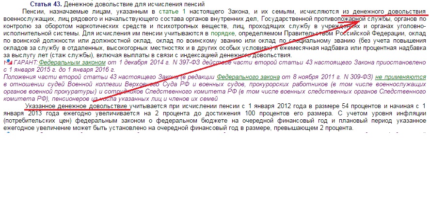 "Указанное денежное довольствие учитывается при исчислении пенсии с 1 января 2012 года в размере 54 процентов и начиная с 1 января 2013 года ежегодно увеличивается на 2 процента до достижения 100 процентов его размера. С учетом уровня инфляции (потребительских цен) федеральным законом о федеральном бюджете на очередной финансовый год и плановый период указанное ежегодное увеличение может быть установлено на очередной финансовый год в размере, превышающем 2 процента."