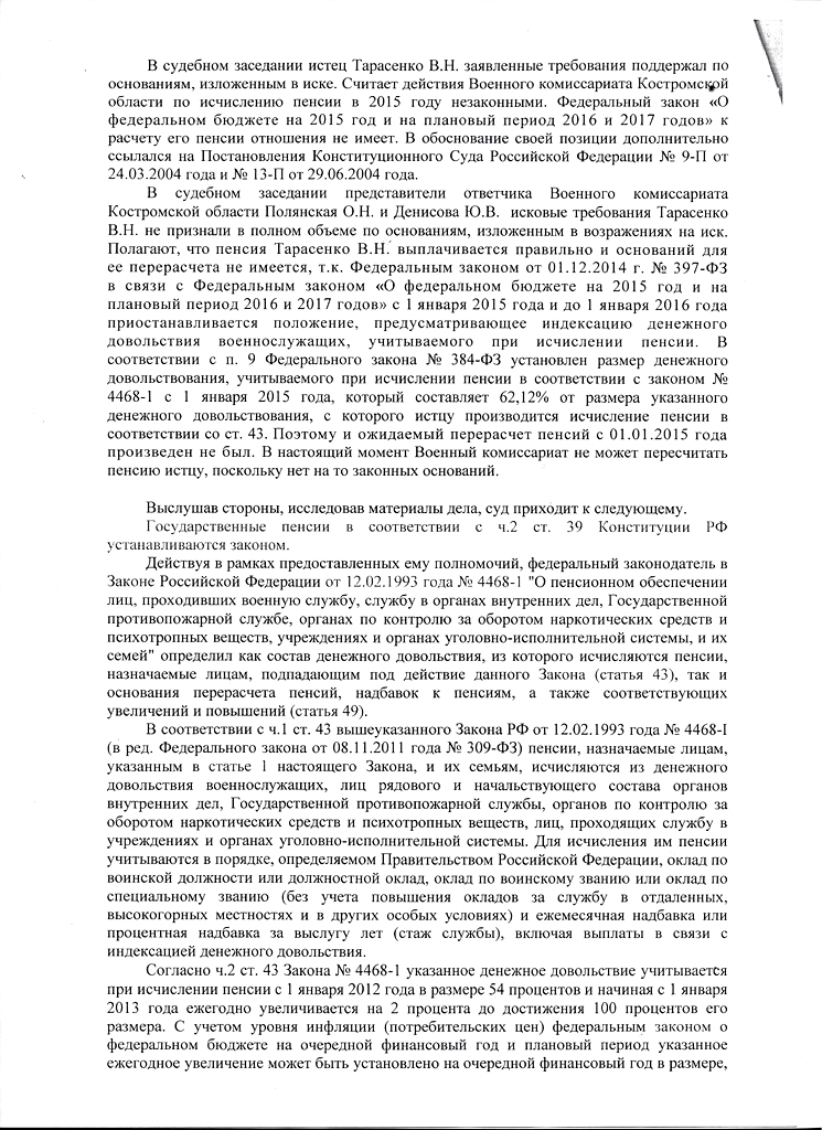 Частью 9 статьи 8 Закона о бюджете на 2015 год установлено, что размер денежного довольствия, учитываемого при исчислении пенсии в соответствии со статьей 43 Закона № 4468-1, с 1 января 2015 года составляет 62,12 процента от размера указанного денежного довольствия.