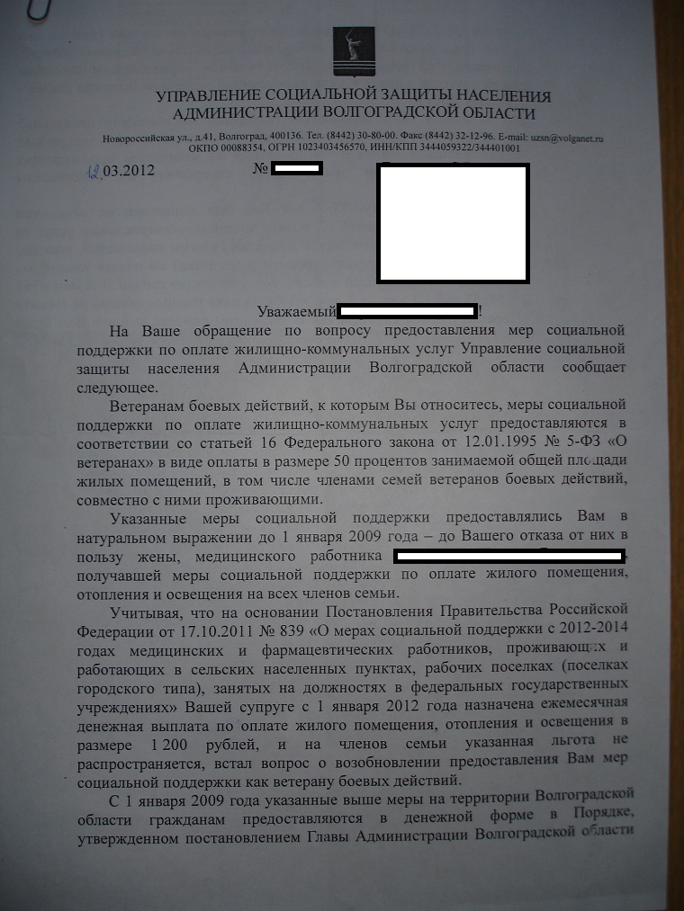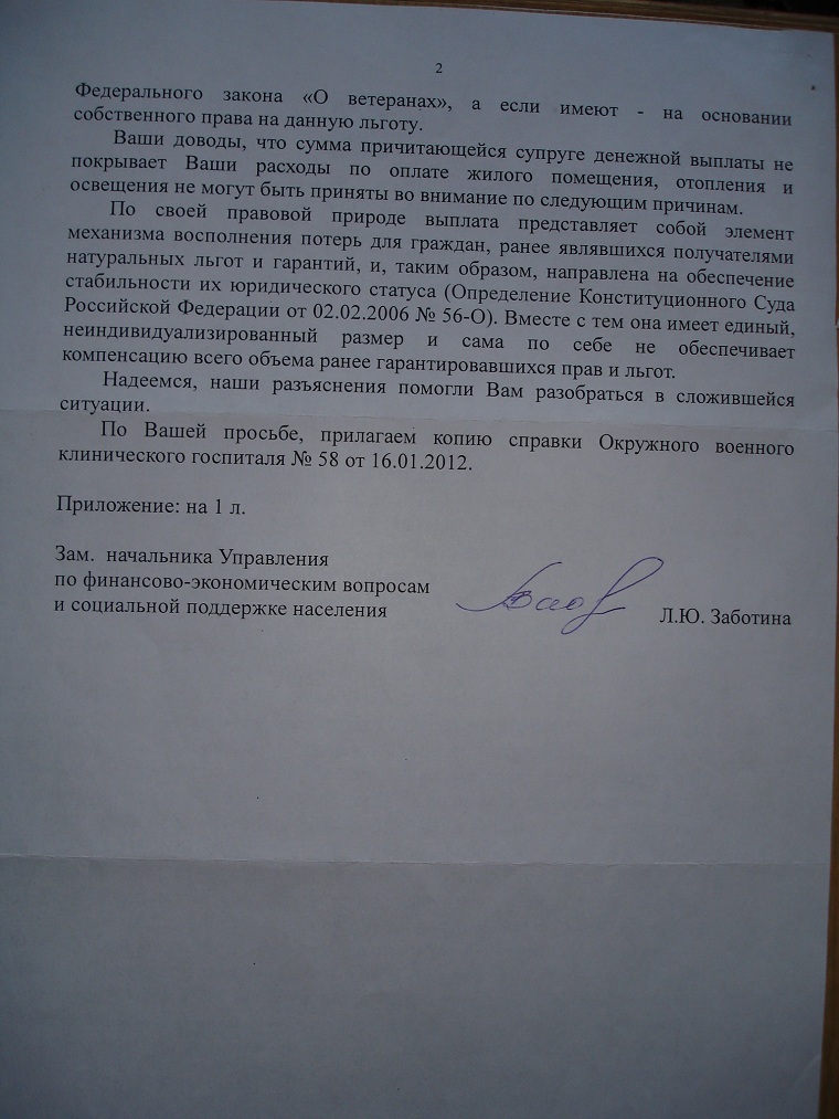 venta, вот ответы на мои обращения с просьбой разъяснить причину урезания объёма выплаты по льготе. Я говорил, что у меня в семье есть другой льготник, но если рассматривать случай когда в семье только один льготник и это ВБД, то размер выплаты не зависит от количества членов его семьи совместно с ним проживающих. Приведу пример. Живёт ВБД и вместе с ним члены его семьи (жена и сын или дочь) дети вырасли и уехали и, что ему положено всего 2/3 от причитающегося размера компенсации (50 % от уплаченной суммы), далее развод и уезжает жена, что теперь он получает всего 1/3 но ведь это бред!!!!