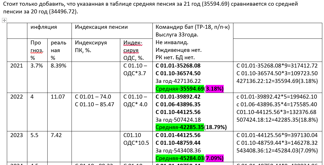 Четвёртый столбец. Максимальный размер пенсии комбата по годам. (С 1 января или с 1 октября, не имеет значения – прислушался к мнению Пахана, хотя с ним не согласен). Далее, за дробью, процент ИПВ (индекс пенсионных выплат), или процент увеличения пенсии по отношению к предыдущему году (7.5% - это ИПВ - 107.5%, 7% - это ИПВ - 107.0% и т.д.). Далее, за дробью, ИПВ за период с 2012 года. Считал ИПВ как ИПЦ. Далее, в скобках, разница между ИПЦ (индекс потребительских цен) и ИПВ (индекс пенсионных выплат) за период с 2012 года (на сколько процентов пенсия отставала от официальной инфляции).