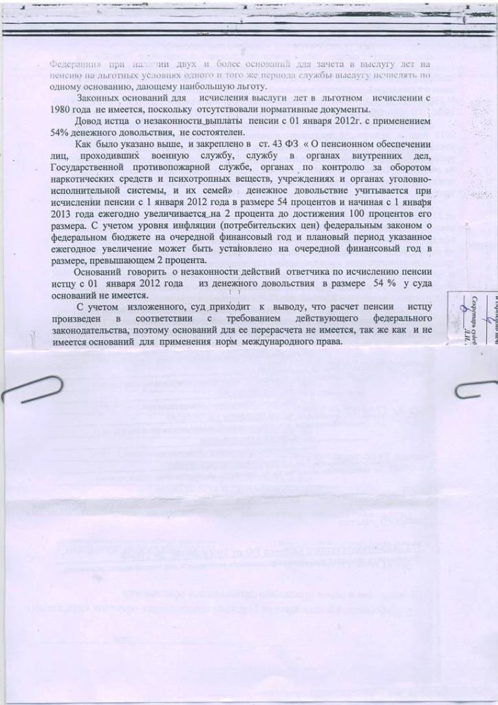 Однако с 1 января 2012 года моя пенсия исчисляется ответчиком, исходя из 54 процентов денежного довольствия, учитываемого для исчисления пенсии.