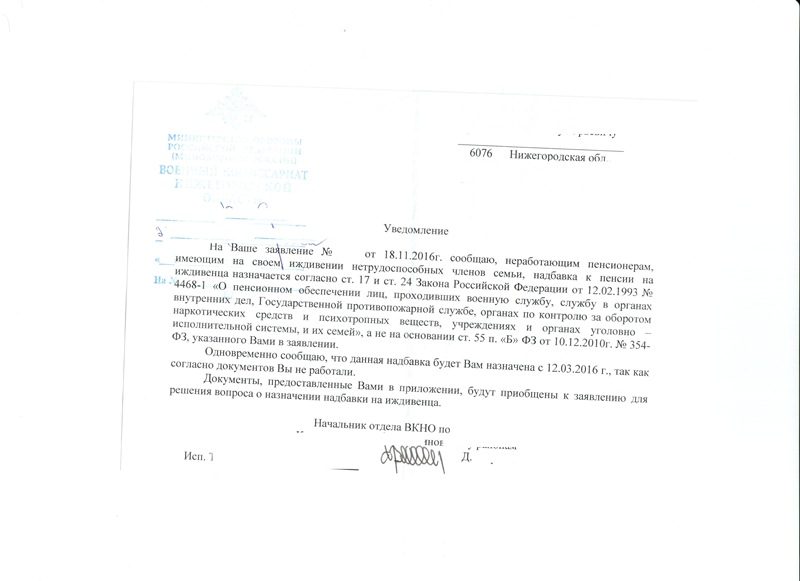 #902Ну вот и ответ по назначению надбавки за иждивенца. Всё же статья 55 была указана мной не верно, собственно какая разница - цели то достигнуты, назначат с момента начисления пенсии, а не как утверждали мне долго и упорно, что с момента регистрации моего заявления.
