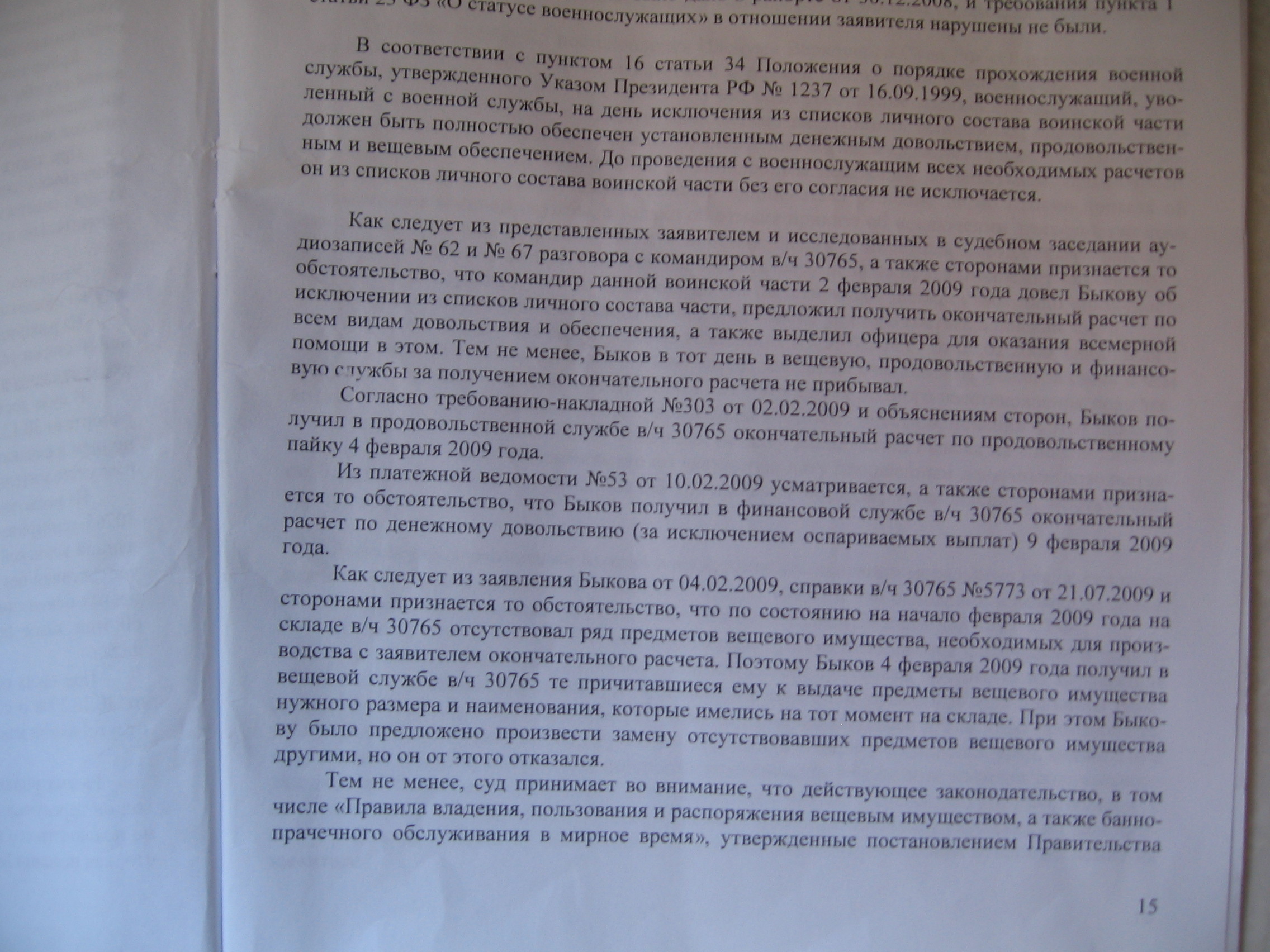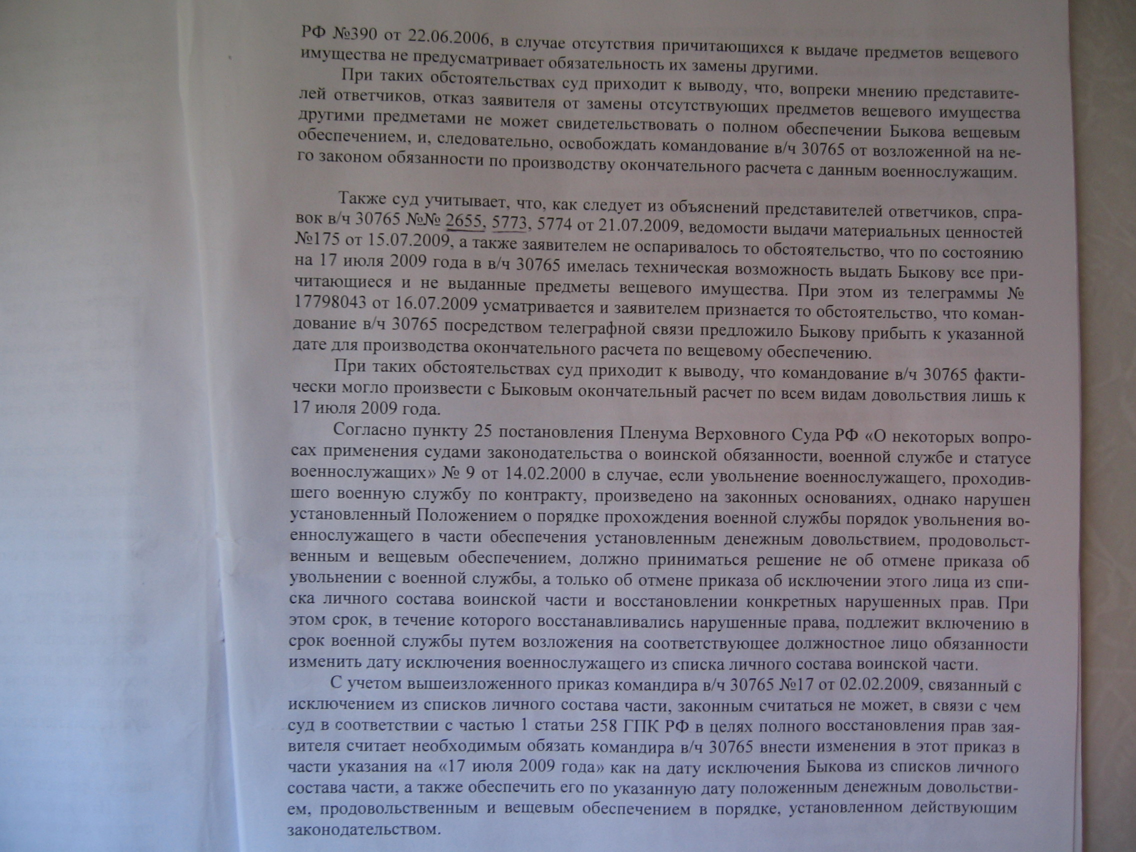 Выкладываю решение С-ПбГВС от 29.07.2009 по моему делу в части вещевого имущества (само решение очень большое на 19 листах, на сайте суда его не опубликовали (слишком незаконное в остальной части)).