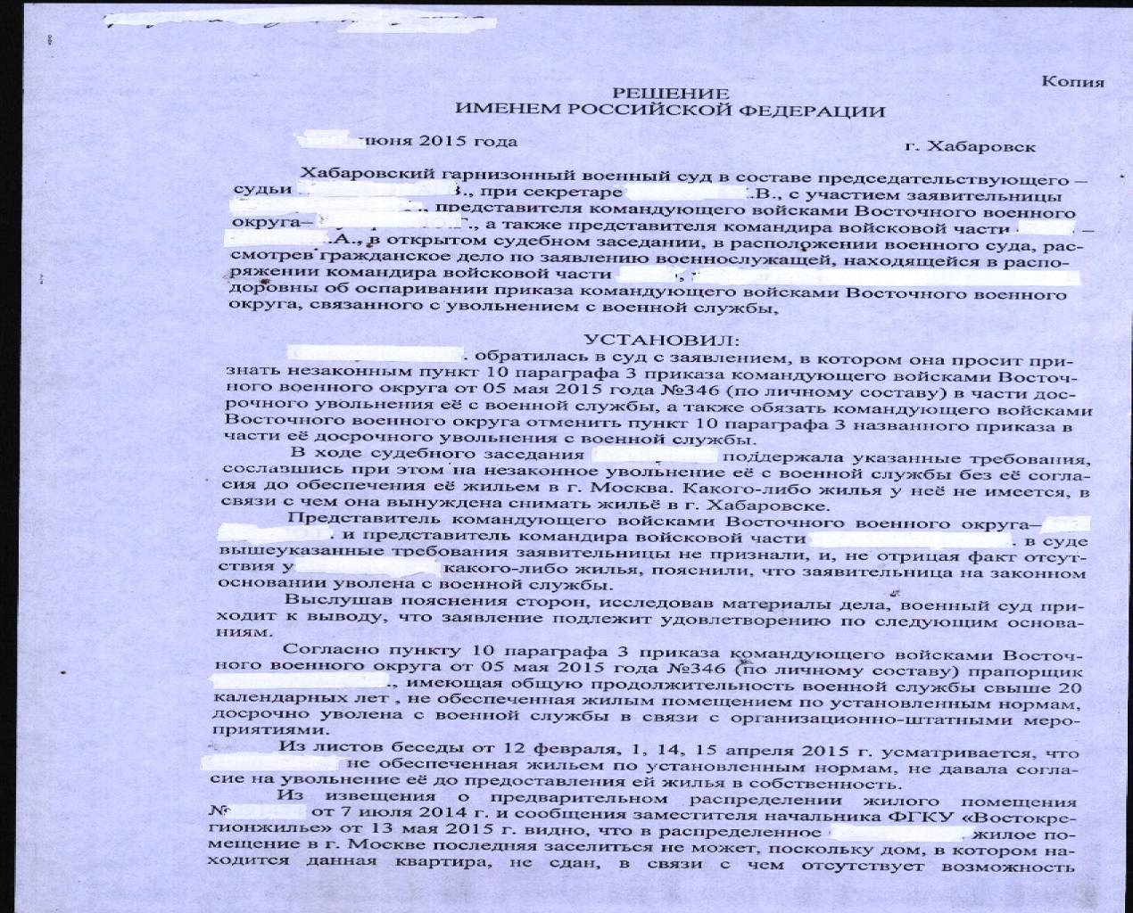 МОВС оставил решение суда первой инстанции без изменения. Суд счёл, что обязанность воинских частей арендовать военнослужащим жилые помещения возникает только в случае признания таких военнослужащих в установленном действующим законодательством порядке, нуждающимися в служебных жилых помещениях, и отсутствия по месту службы либо в других близлежащих к нему населенных пунктах служебных жилых помещений.