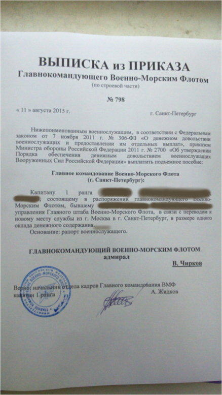 Затем мы пошли в наши кадры (ВМФ я имею ввиду). И там попросили начальника ускорить вопрос с приказом, а также организовать централизованное получение справок о необеспеченности служебкой в Москве (ведь поднаем будут выплачивать не с момента прибытия, а с момента подачи документов в РУЖО). Начальник обещал все решить очень быстро.