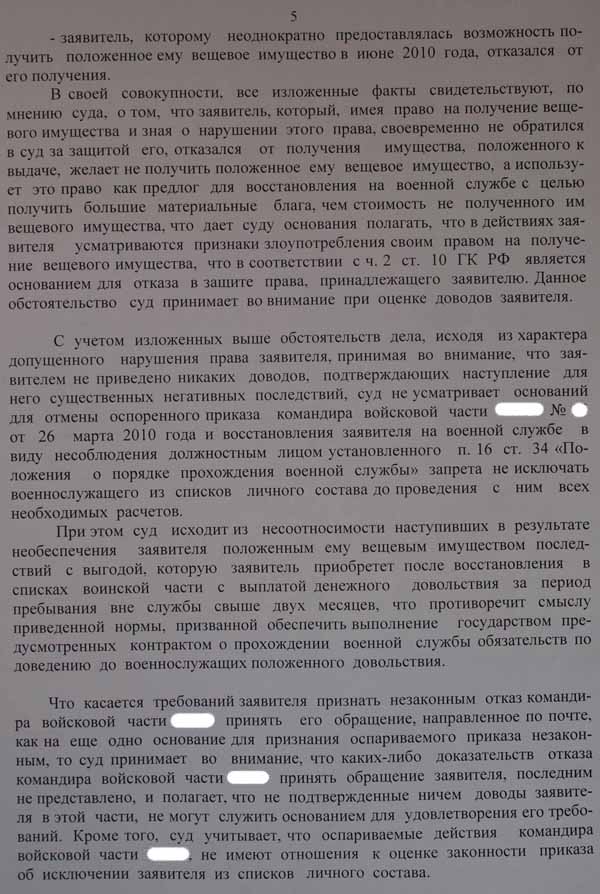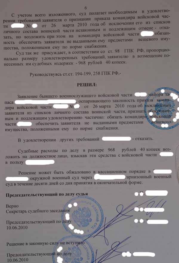 Выставляю решение суда. Создаётся ощущение, что я был немым на суде. Удивляет одно - как только меня не заставили оплатить министерству обороны задолжность по вещёвке?