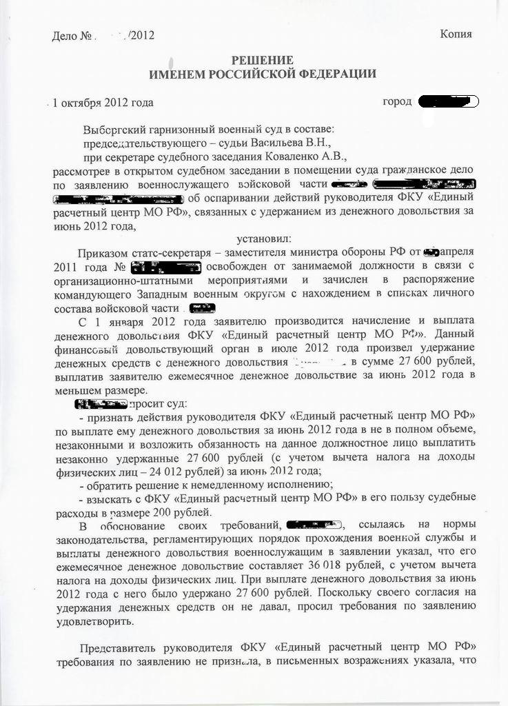 видимо в 94ом суде решили судить одинаково и военных не обижать удержанием