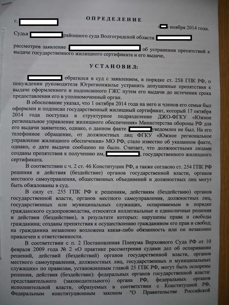 В октябре 2014 года обращался к командиру войсковой части с просьбой ходатайствовать о распределении мне квартиры, на которое был получен отказ от начальника ЮРУЖО на основании п. 4 Протокола селекторного совещания Департамента жилищного обеспечения МО РФ № 19 от 10 октября 2014 года "обеспечить неукоснительное выполнение решения Министра обороны Российской Федерации в части обеспечения служебными жилыми помещениями военнослужащих, проходящих военную службу в Вооружённых Силах Российской Федерации по контракту, при обязательном условии наличия общей продолжительности службы не менее 10 лет".