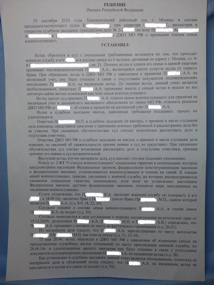 1.) писать рапорт командиру (или как у др. 99%через суд) на включение в личное дело в качестве иждивенца, в моём случае вариант наитруднейший, ибо согласно именно этой инструкции иждивенец должен находится на обеспечении именно военнослужащего, что доказать сложно, либо вариант 2.) с документами приведёнными выше доказать в суде статус члена семьи, что по моему проще.