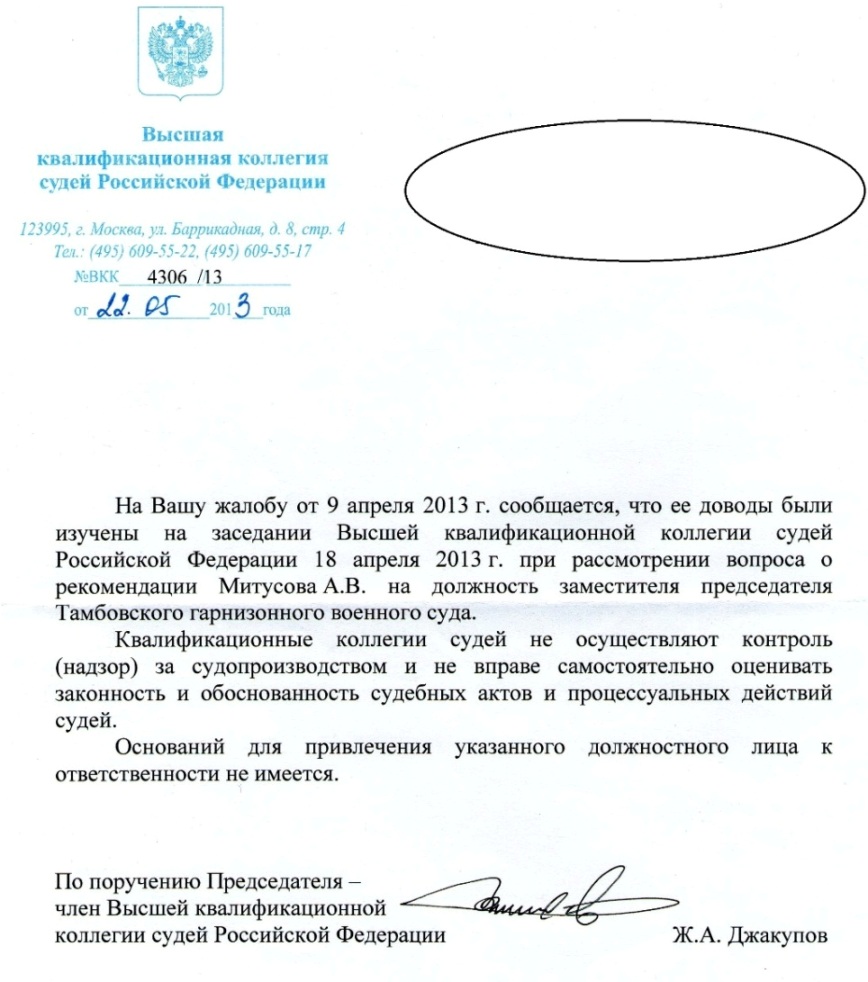 Писал жалобу в Высшую квалификационную коллегию судей, так как судья по моему делу был ВрИД председателя гарнизонного суда - председателю не пожалуешься)))