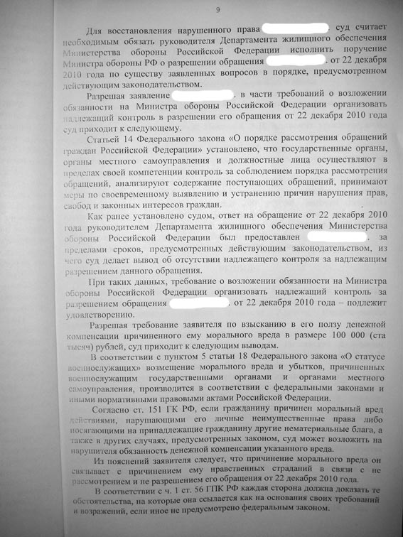 В сентебре 2008 года -суд. решение - обязать командира обеспечить жильем.